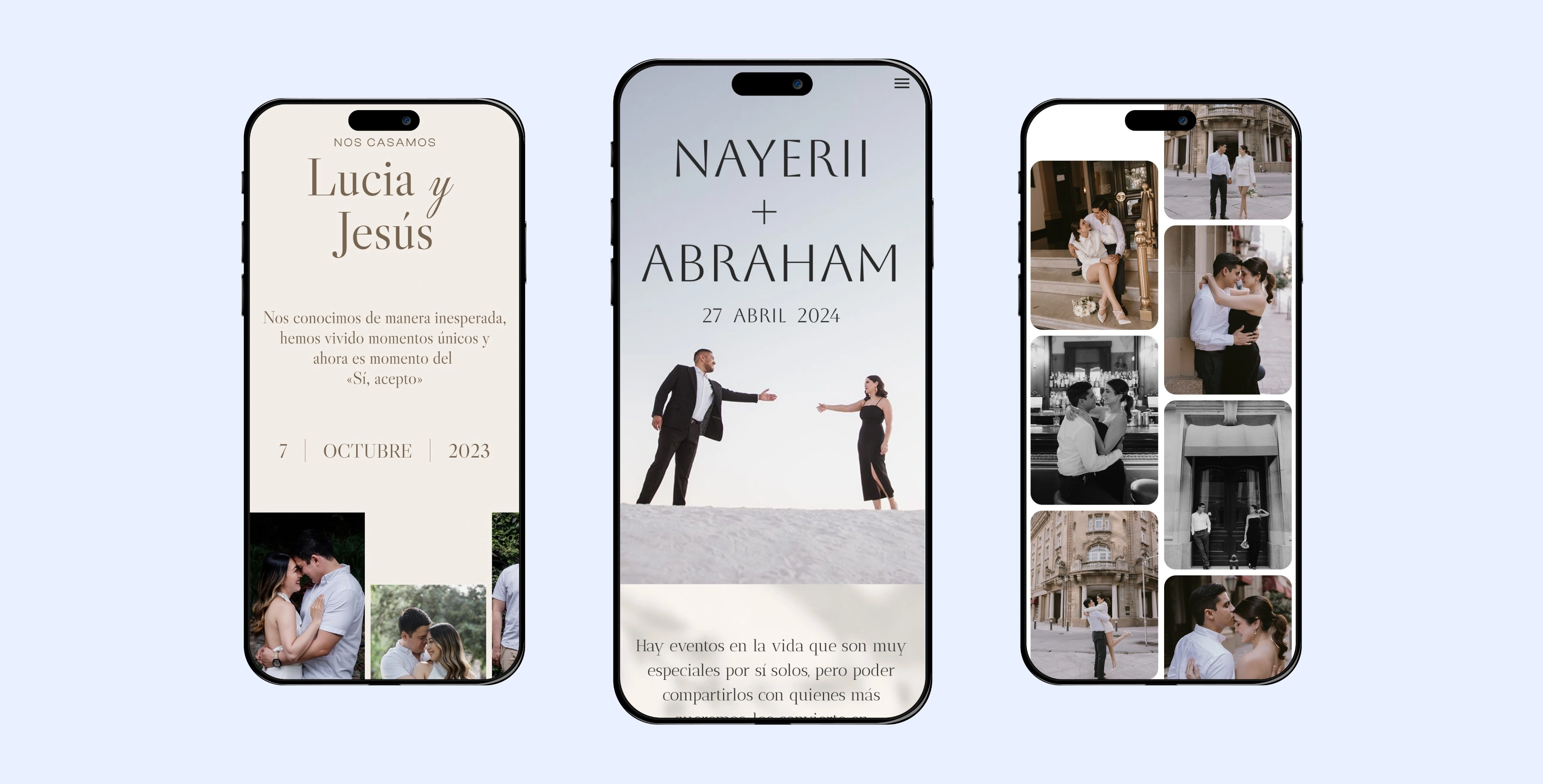 Con Weddeb no solo compartes los detalles de tu boda, también creas una experiencia única para tus invitados. Tu invitación web reúne en un solo lugar la fecha, ubicación, mesa de regalos y mucho más.